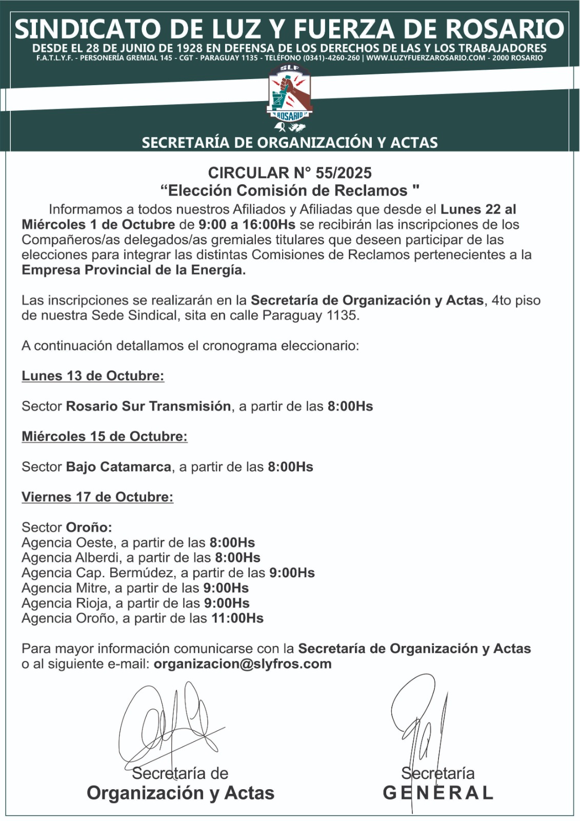 Circular N° 55/2025 : «Elección Comisión de Reclamos».