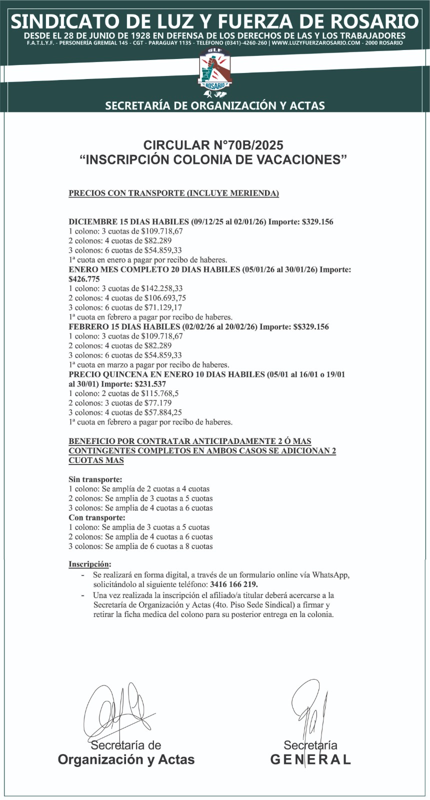 Circular N° 70B/2025: «INSCRIPCIÓN COLONIA DE VACACIONES».
