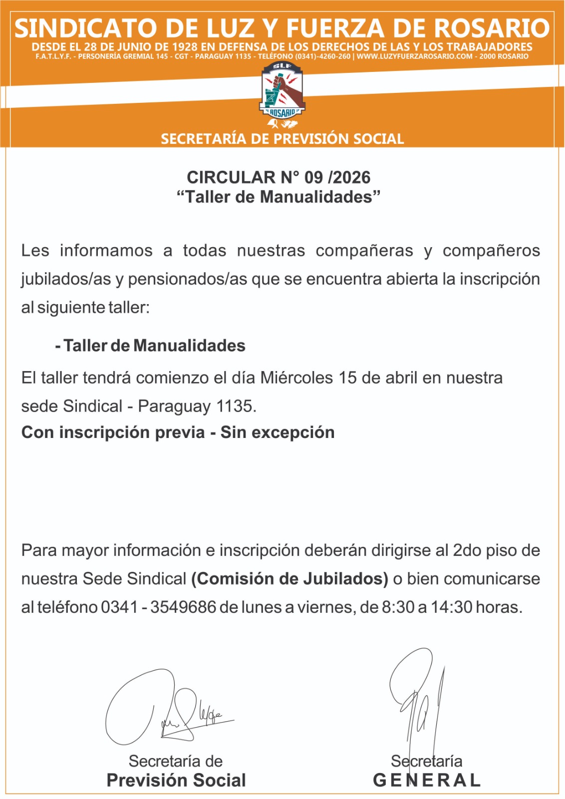 Circulas N° 9/2026 : «Taller de Manualidades».